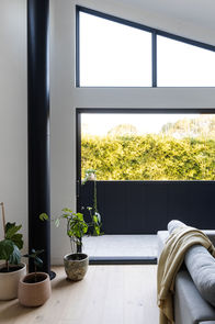 This project features a split skillion roof with high ceilings as a way of elevating the property to create a sense of scale and volume, which also ensures that the house is flooded with natural light.